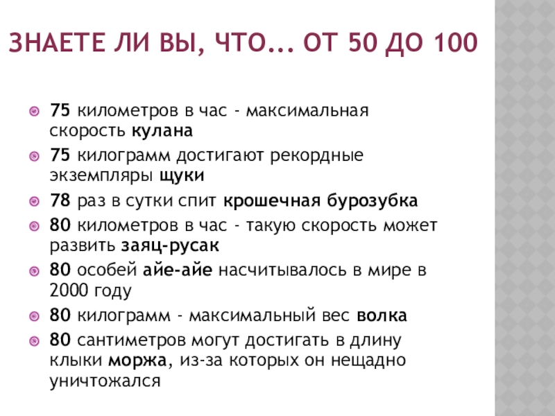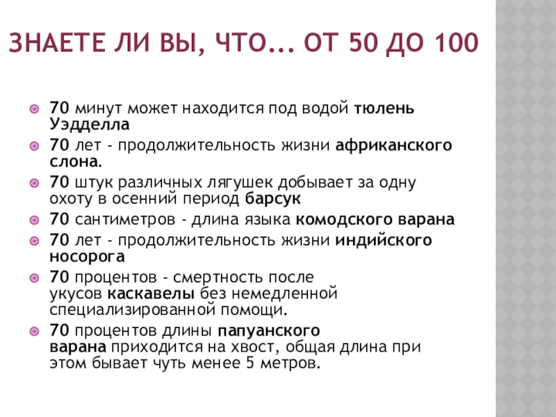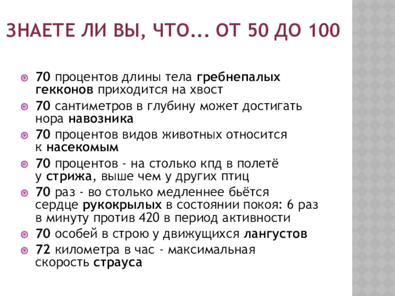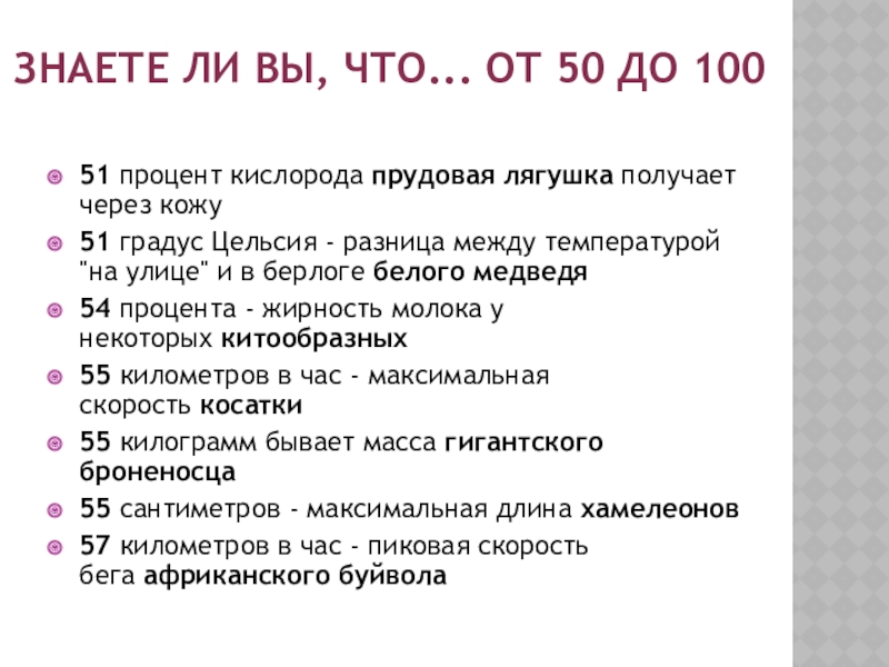 Слайд 7Знаете ли Вы, что... от 50 до 100
