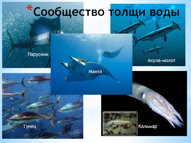 Сообщество толщи водыАкула-молотКальмарТунецПарусникМанта