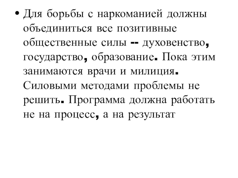 Слайд 18Для борьбы с наркоманией должны объединиться все позитивные общественные силы --