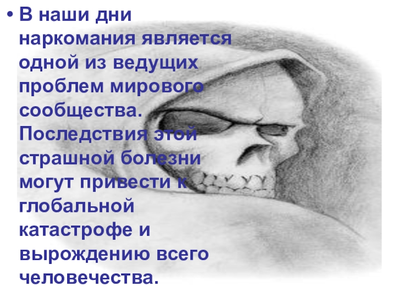 Слайд 3В наши дни наркомания является одной из ведущих проблем мирового сообщества.