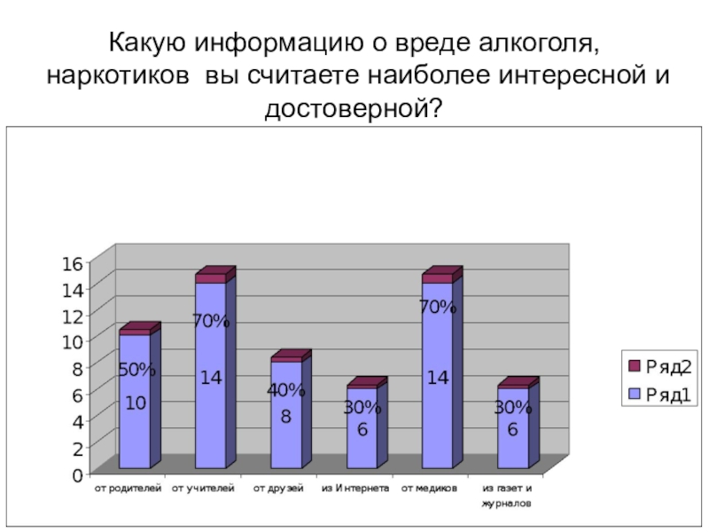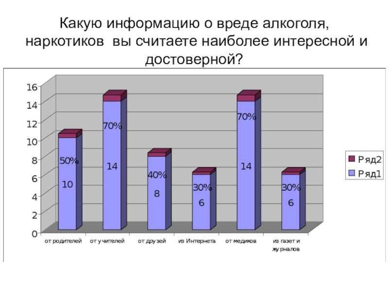 Слайд 22Какую информацию о вреде алкоголя, наркотиков вы считаете наиболее интересной и