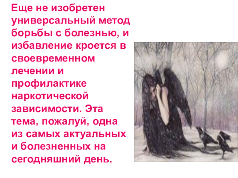 Слайд 4 Еще не изобретен универсальный метод борьбы с болезнью, и