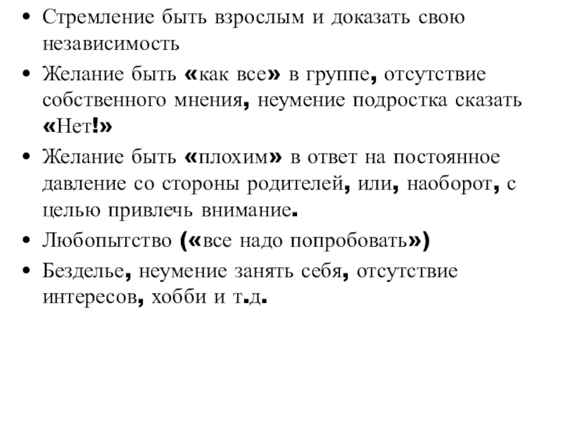 Слайд 15Стремление быть взрослым и доказать свою независимость