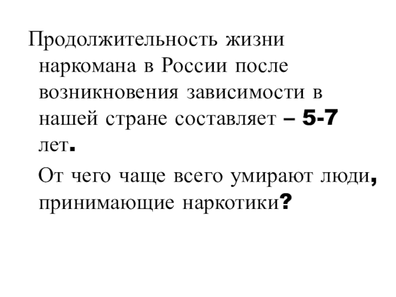 Продолжительность жизни наркомана в России после возникновения зависимости в