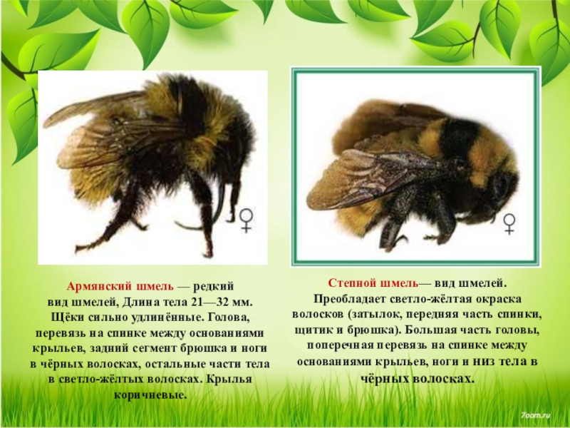 Степной шмель— вид шмелей. Преобладает светло-жёлтая окраска волосков (затылок, передняя часть спинки, щитик и брюшка). Большая часть головы, поперечная перевязь на спинке между основаниями крыльев, ноги и низ тела в чёрных волосках.