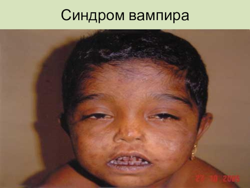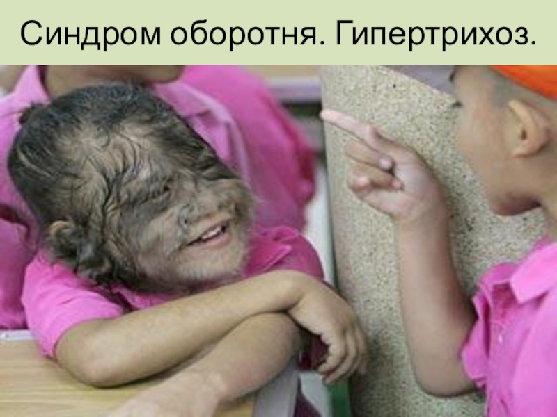 Слайд 14У маленьких детей, страдающих от этой болезни, вырастают длинные темные волосы