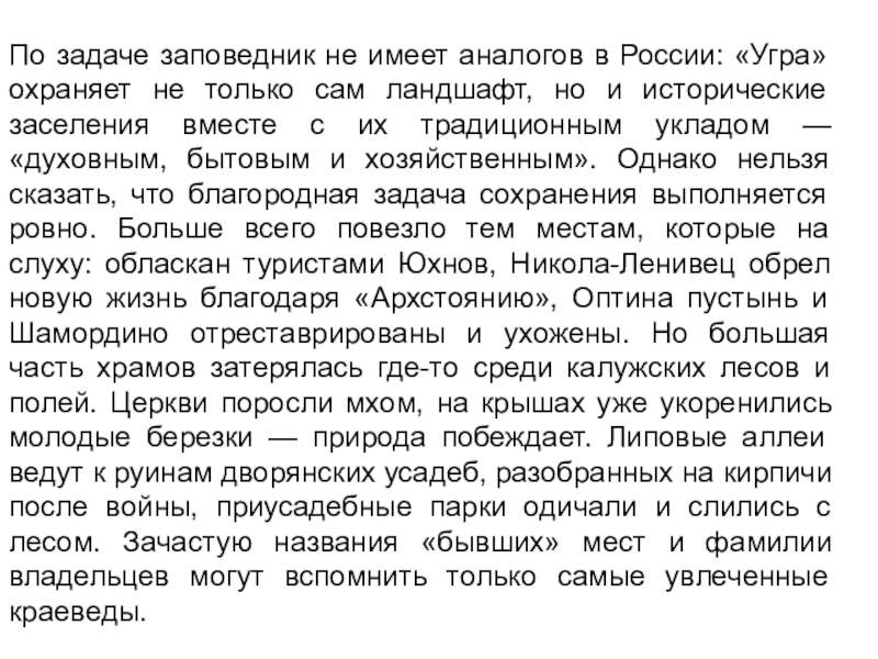Слайд 6По задаче заповедник не имеет аналогов в России: «Угра» охраняет не