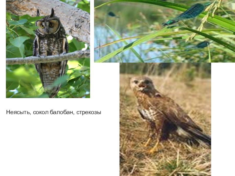 Слайд 18Неясыть, сокол балобан, стрекозы