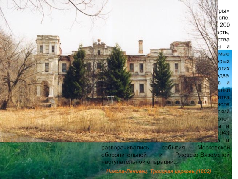 на юг. Берега Угры превратились в тихое и живописное местом, которое оживлял лишь построенный для связи новых южных губерний с Петербургом петровский Гжатский тракт. В это время здесь создаются монастыри и усадьбы, часть из которых дожила до наших дней, но с поездкой туда стоит поторопиться — они уже дышат на ладан.