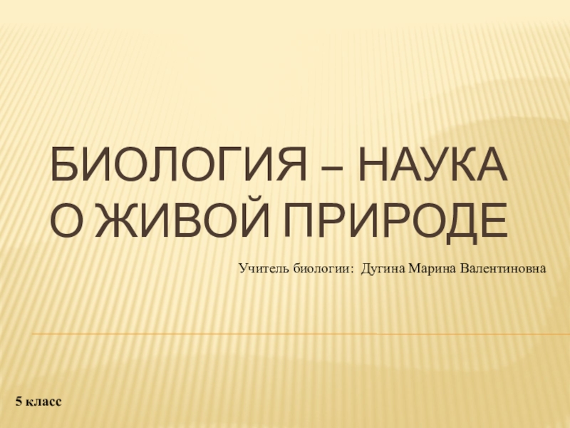 Биология – наука  о живой природе5 классУчитель биологии: Дугина Марина Валентиновна