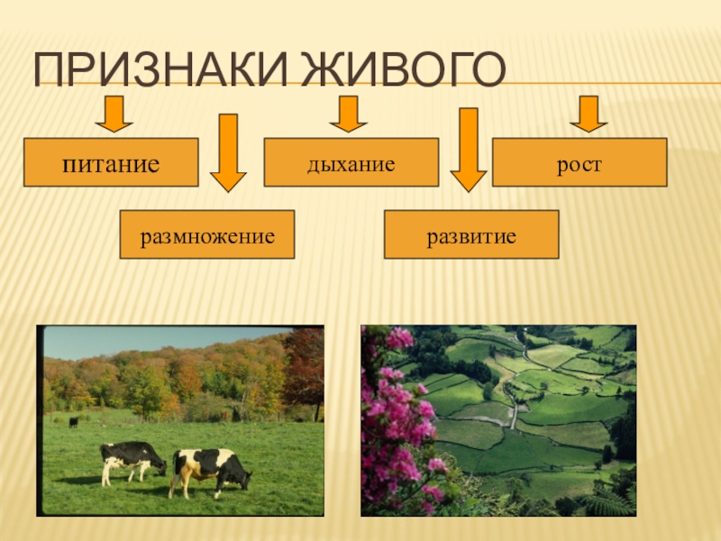 Признаки живогопитаниедыханиеростразмножениеразвитие