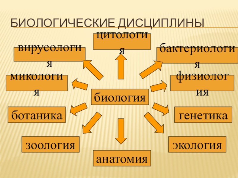 биологияБиологические дисциплиныботаникамикологиябактериологияцитологиявирусологиягенетикафизиологияанатомияэкологиязоология
