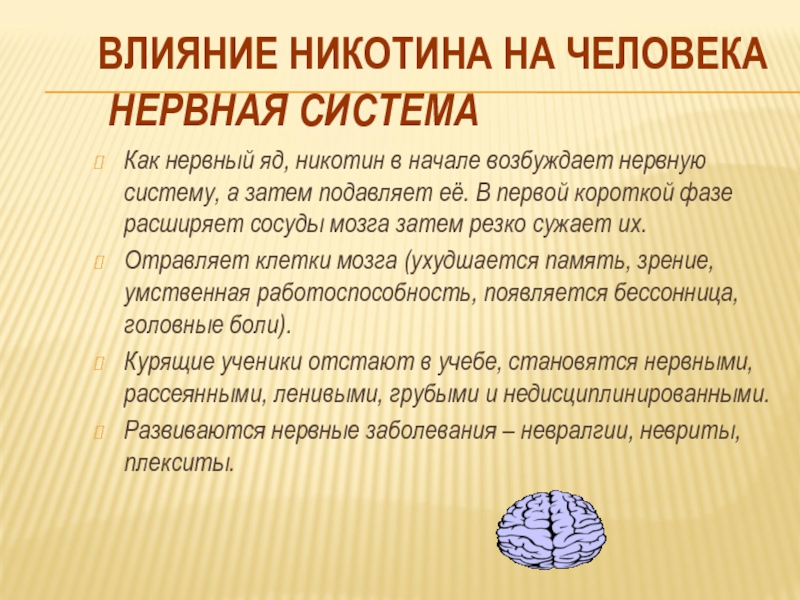 ВЛИЯНИЕ НИКОТИНА НА ЧЕЛОВЕКА