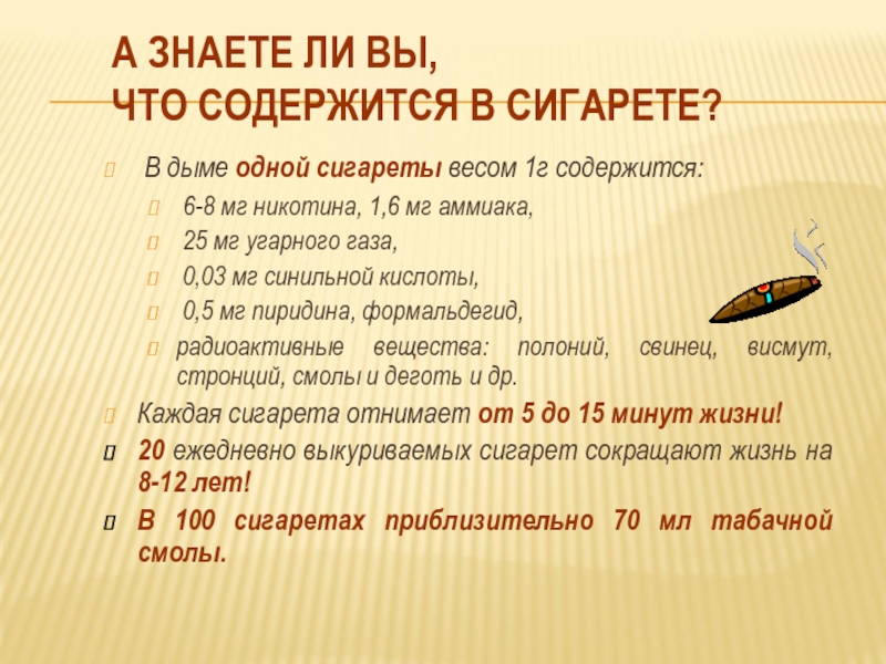 как и в крепких сигаретах.