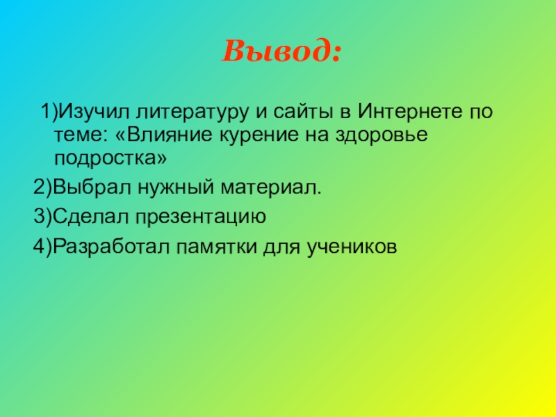 1)Изучил литературу и сайты в Интернете по теме: «Влияние