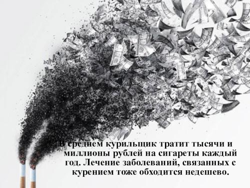 Слайд 10В среднем курильщик тратит тысячи и миллионы рублей на сигареты каждый