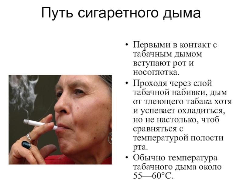 Проходя через слой табачной набивки, дым от тлеющего табака хотя и успевает охладиться, но не настолько, чтоб сравняться с температурой полости рта.