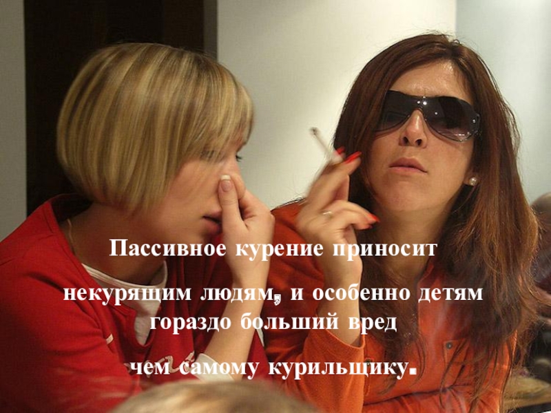 За один час нахождения в накуренной комнате человек получает столько канцерогенов (вещества, вызывающие рак), сколько от выкуривания 15 сигарет с фильтром.