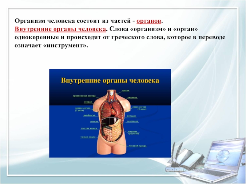 Организм человека состоит из частей - органов. Внутренние органы человека. Слова «организм» и «орган» однокоренные и происходят от