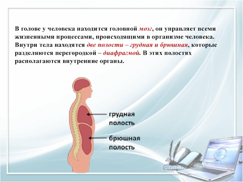 происходящими в организме человека. Внутри тела находятся две полости – грудная и брюшная, которые разделяются перегородкой – диафрагмой. В этих полостях располагаются внутренние органы.