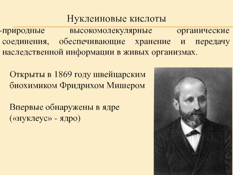 Открыты в 1869 году швейцарским биохимиком Фридрихом Мишером