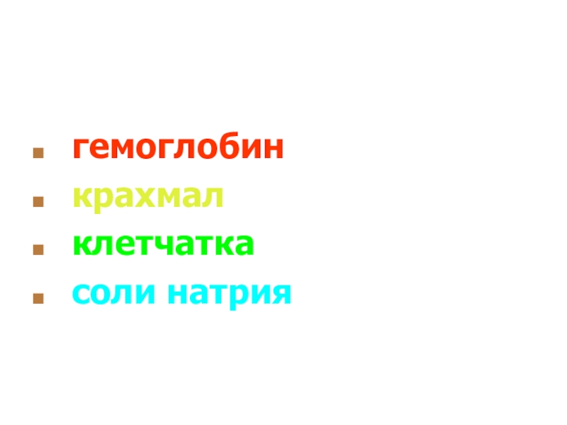 1. К белкам относится:гемоглобинкрахмалклетчаткасоли натрия