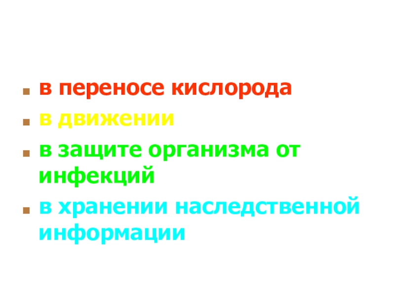 3.Белки не участвуют в переносе кислородав движениив защите организма от инфекцийв хранении наследственной информации