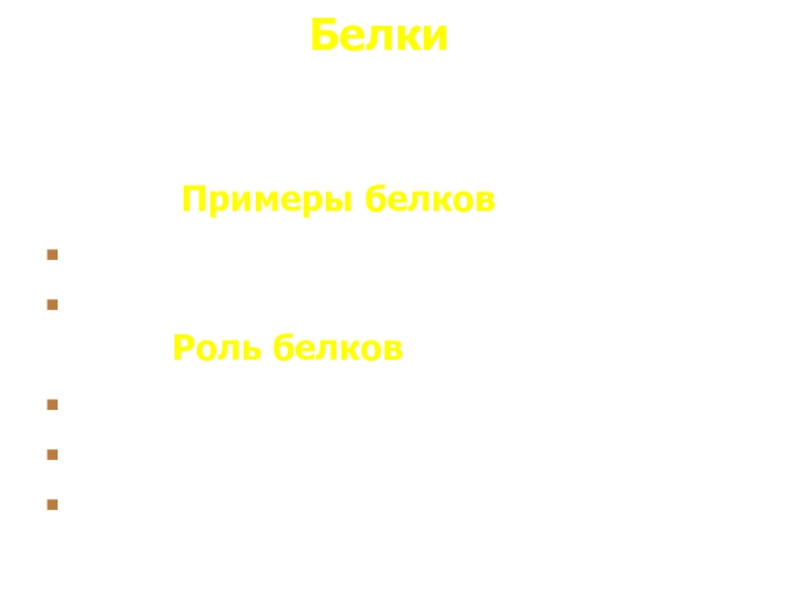Белки –        Примеры белков:Белок гемоглобинСократительные белки