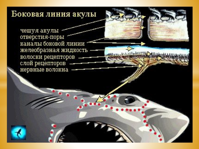 воды, представляет собой подкожный канал, выстланный клетками чувствительного эпителия с подходящими к нему нервными окончаниями. С наружной средой канал сообщается отверстиями, пронизывающими чешую или покровы тела. Боковая линия имеет систематическое значение. Ее внешний вид весьма разнообразен.
