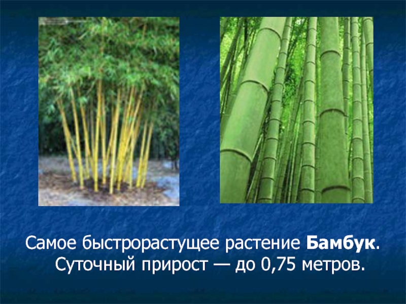 Самое быстрорастущее растение Бамбук. Суточный прирост — до 0,75 метров.
