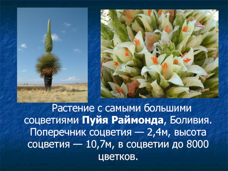 Растение с самыми большими соцветиями Пуйя Раймонда, Боливия.