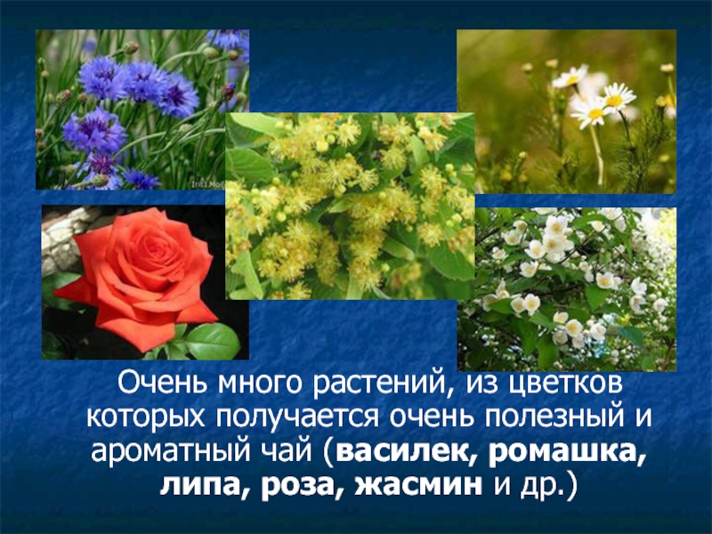 и ароматный чай (василек, ромашка, липа, роза, жасмин и др.)