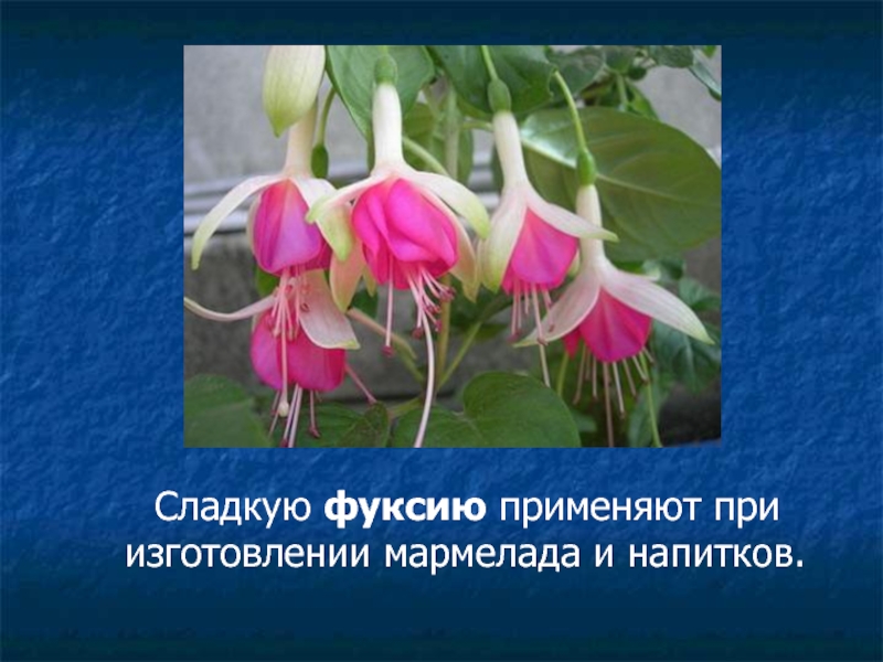 Сладкую фуксию применяют при изготовлении мармелада и напитков.