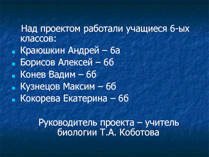 Руководитель проекта – учитель биологии Т.А. Коботова