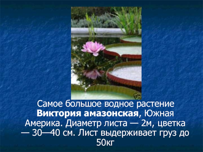 Самое большое водное растение Виктория амазонская, Южная Америка. Диаметр