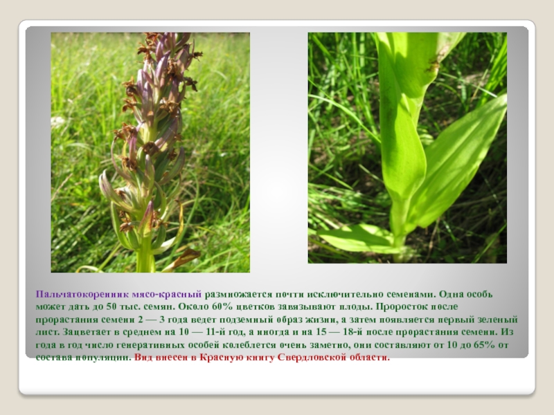 Слайд 17Пальчатокоренник мясо-красный размножается почти исключительно семенами. Одна особь может дать до