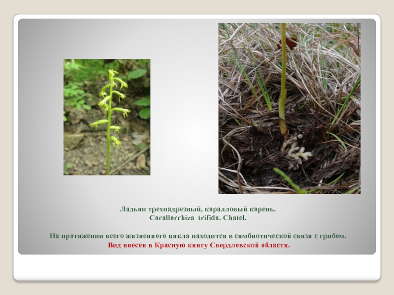Слайд 27Ладьян трехнадрезный, коралловый корень.
