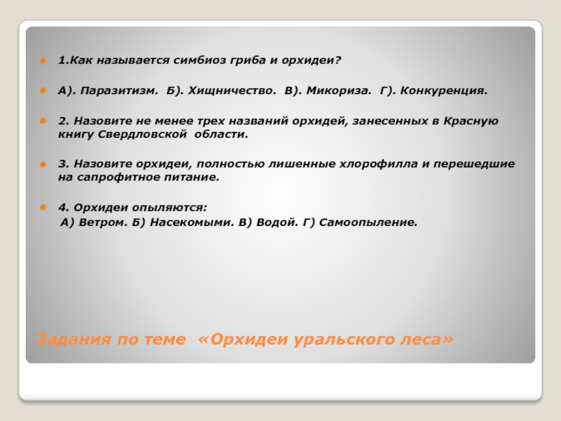 Слайд 37Задания по теме «Орхидеи уральского леса»