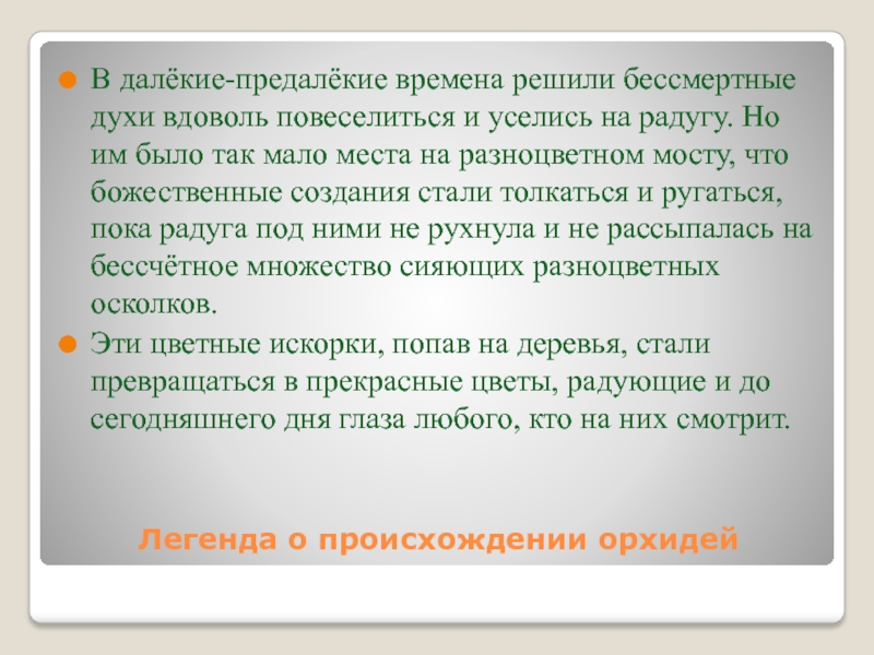 Слайд 2Легенда о происхождении орхидей