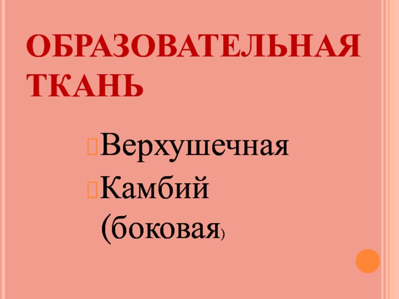 ОБРАЗОВАТЕЛЬНАЯ ТКАНЬВерхушечнаяКамбий (боковая)