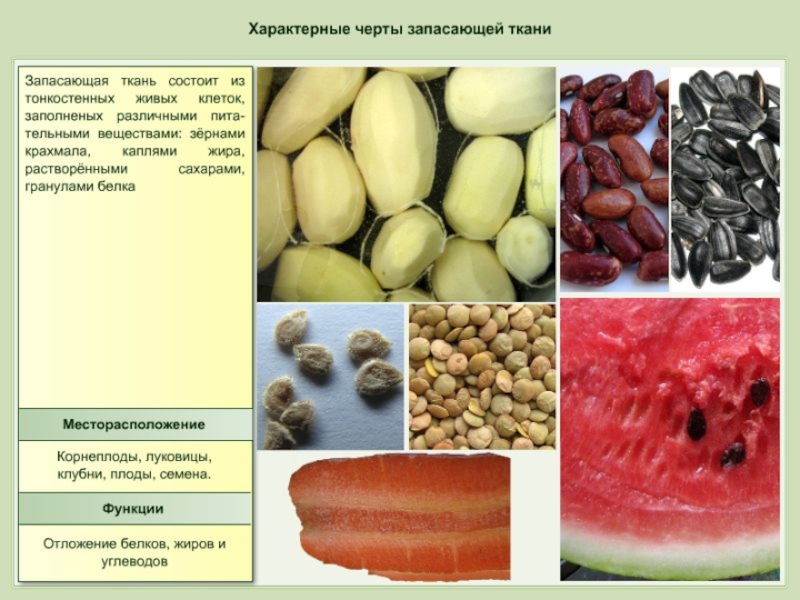 Основные ткани растенийФотосинтезирующаяЗапасающаяВодоноснаявоздухоносная