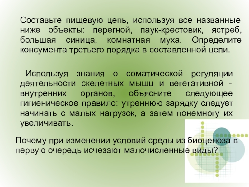 Используя знания о соматической регуляции деятельности скелетных мышц и вегетативной - внутренних органов, объясните следующее гигиеническое правило: утреннюю зарядку следует начинать с малых нагрузок, а затем понемногу их увеличивать.