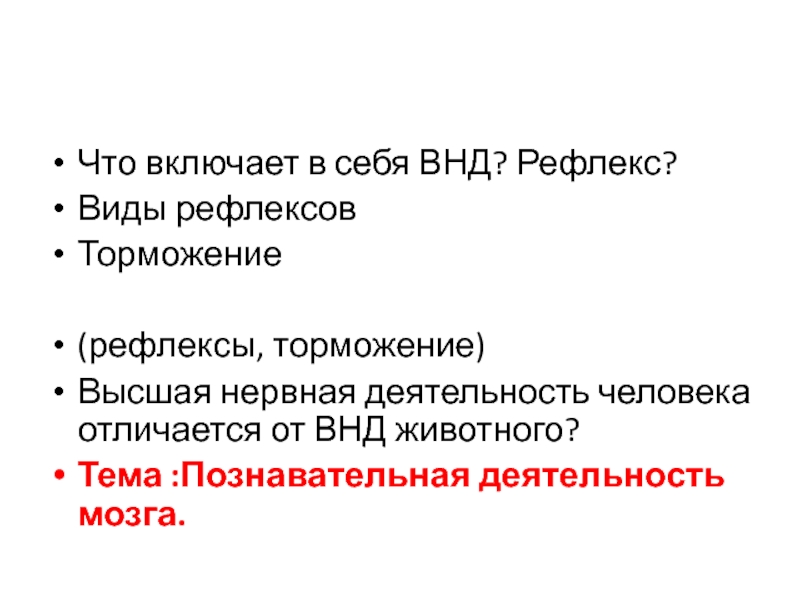 Слайд 3Что включает в себя ВНД? Рефлекс?