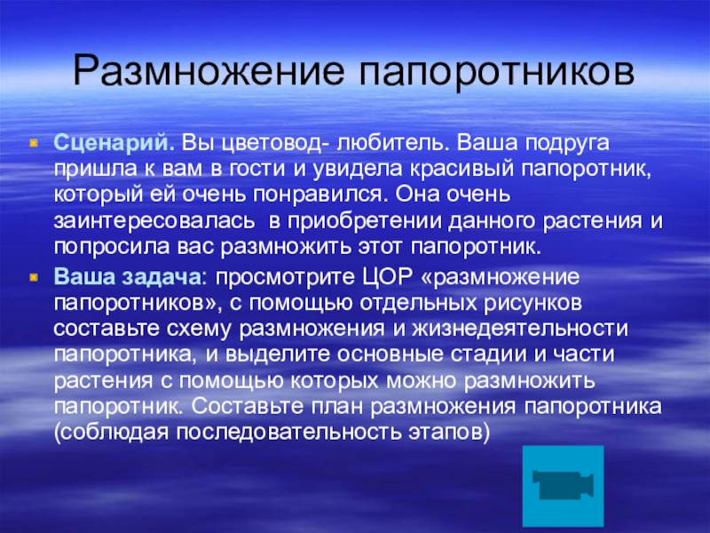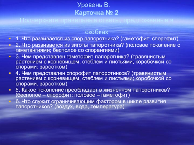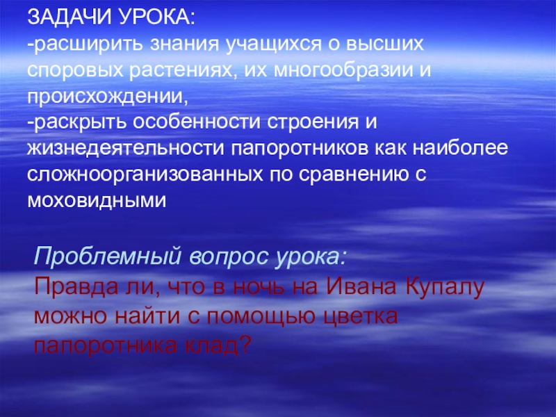 -раскрыть особенности строения и жизнедеятельности папоротников как наиболее сложноорганизованных по сравнению с моховидными