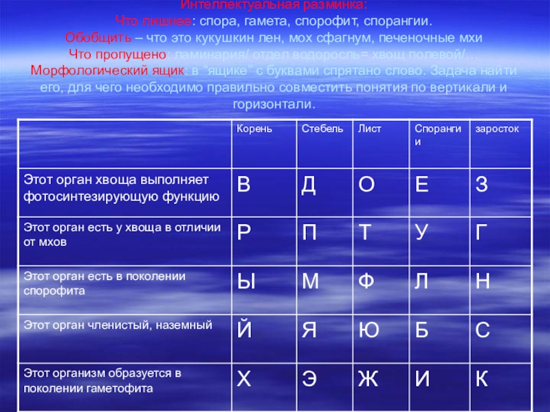4.Сравните папоротник со мхом. Найдите черты сходства и различия. Заполните таблицу «Сравнение папоротника и хвоща».