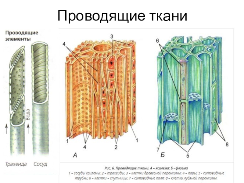 Клетки вытянуты, торцевые стенки скошены. Клетки мертвые. В стенках клеток есть поры, обеспечивающие фильтрацию жидкости.