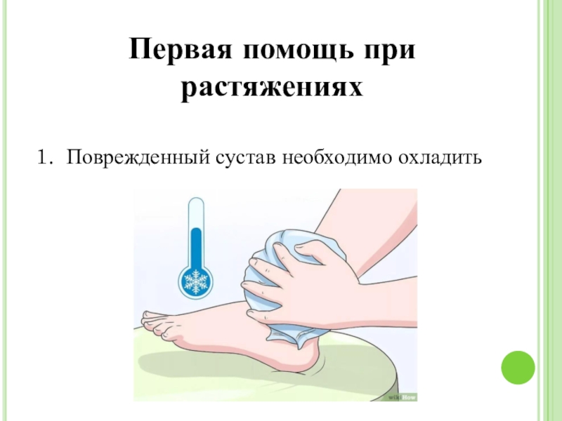 Слайд 4Первая помощь при растяжениях