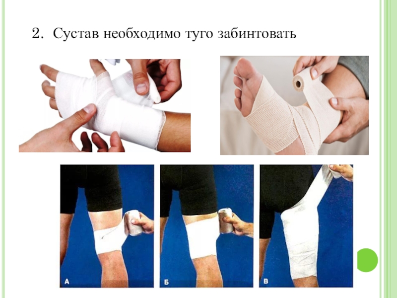 2. Сустав необходимо туго забинтовать