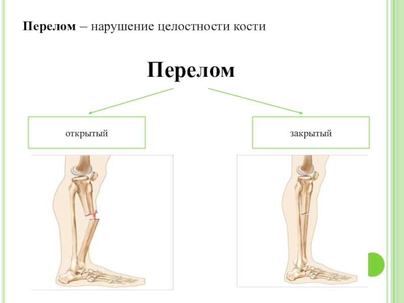 Перелом – нарушение целостности костиПерелом открытыйзакрытый