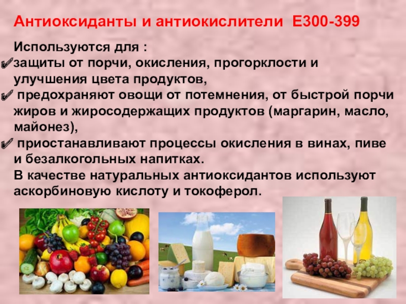 предохраняют овощи от потемнения, от быстрой порчи жиров и жиросодержащих продуктов (маргарин, масло, майонез),